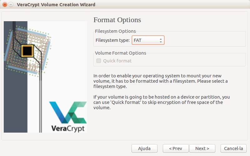 - Determina el formato que le darás al contenedor. Sí, el contenedor hay que formatearlo, pues será una unidad más del ordenador